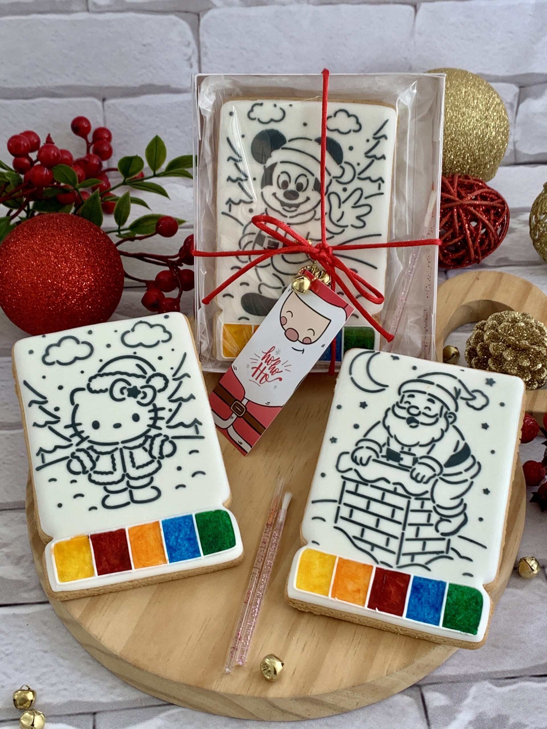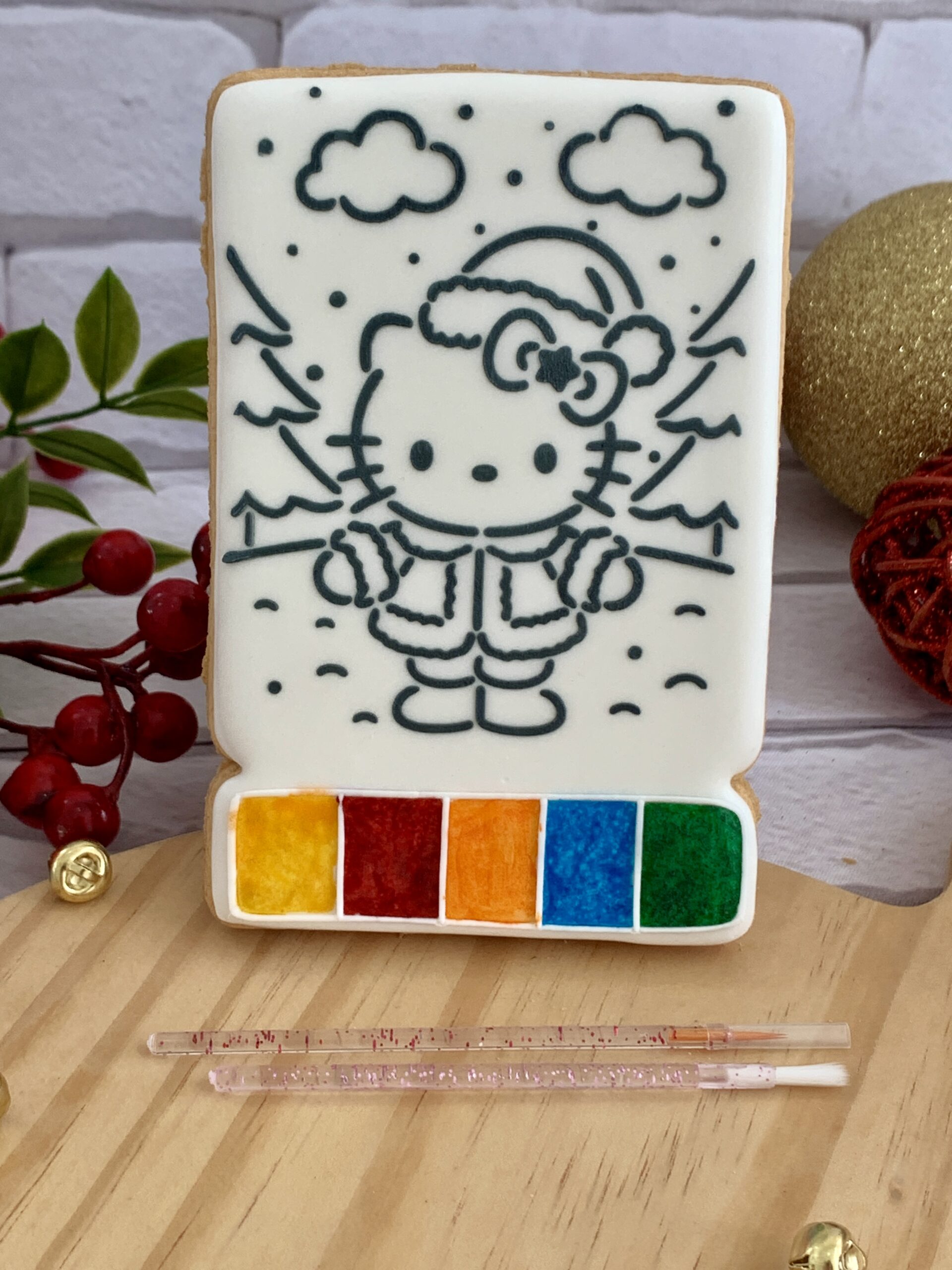 As cores para pintura são alimentícias e estão no próprio biscoito.